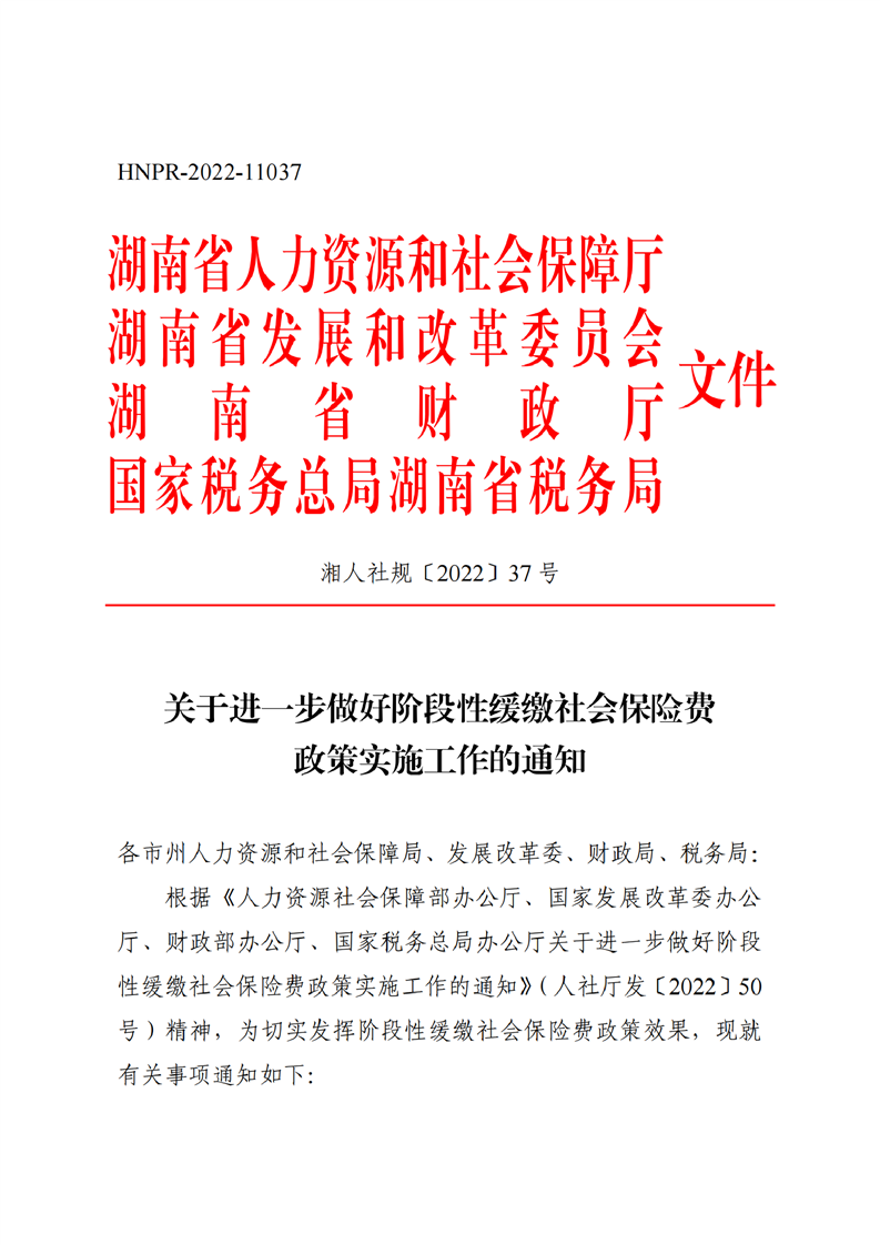 湖南印發(fā)《關于進一步做好階段性緩繳社會保險費政策實施工作有關問題的通知》