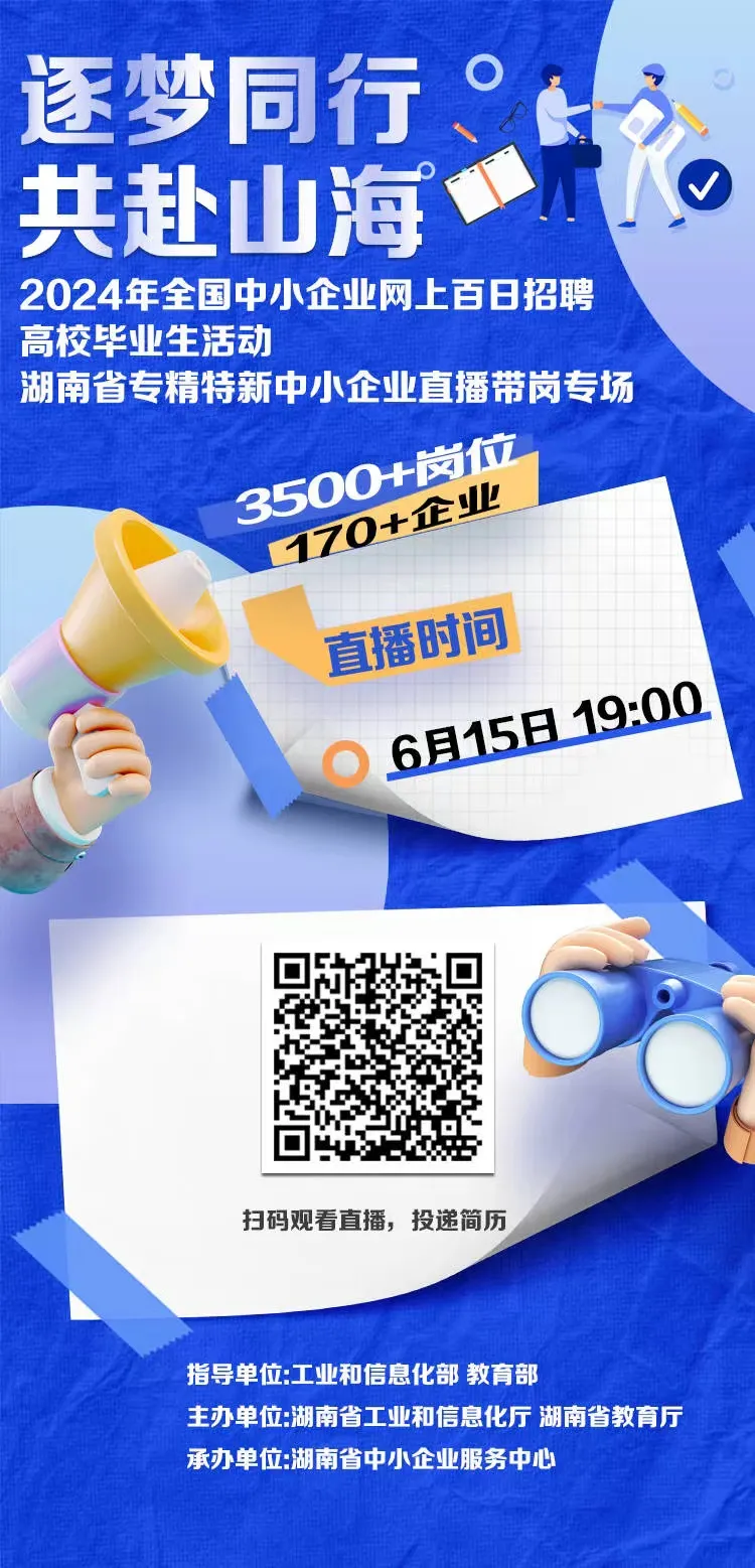 1、6月15日19:00在線直播|2024年湖南省專精特新中小企業(yè)直播帶崗活動(dòng)專場(chǎng)