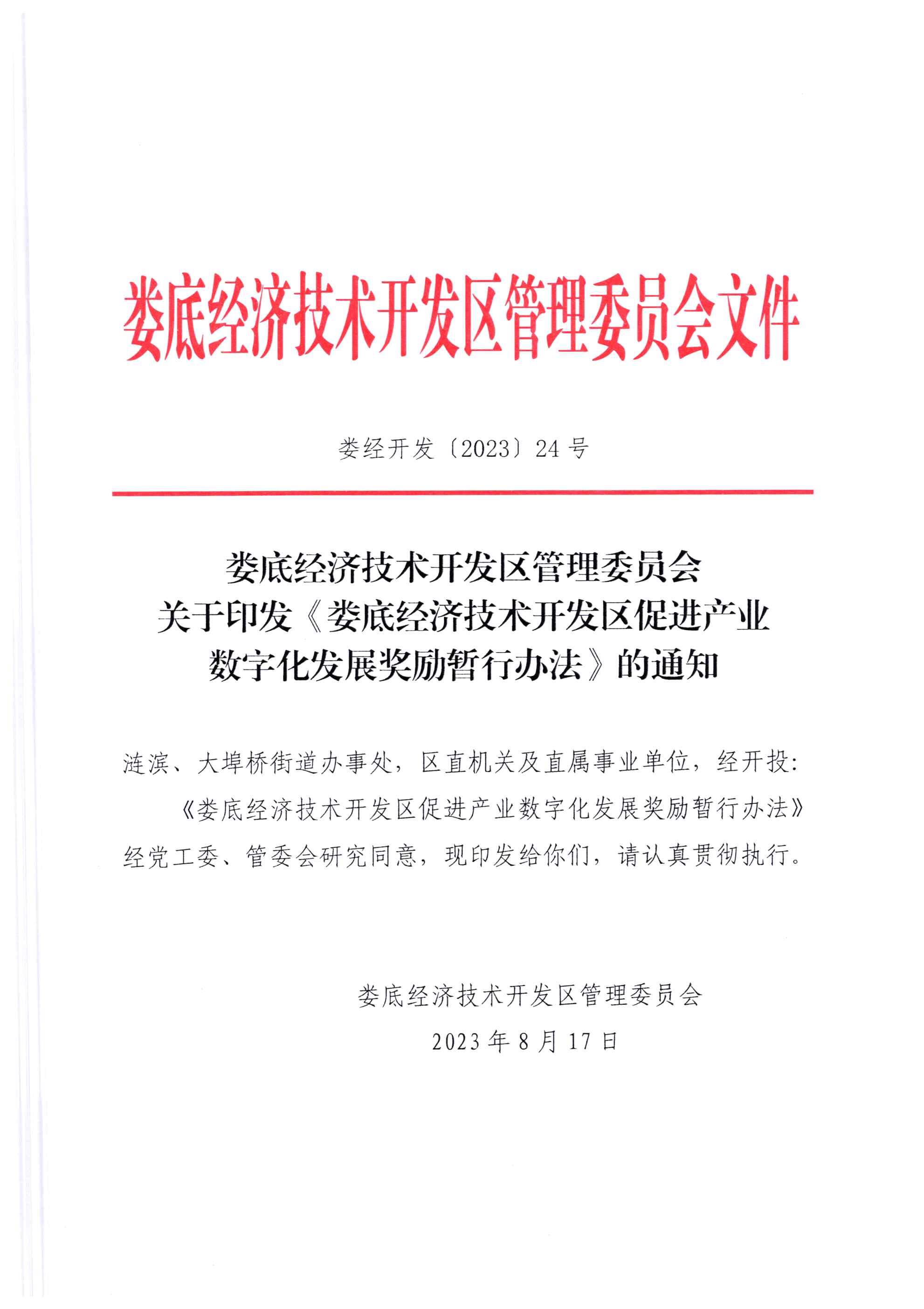 婁底經(jīng)濟技術(shù)開發(fā)區(qū)管理委員會 關(guān)于印發(fā)《婁底經(jīng)濟技術(shù)開發(fā)區(qū)促進產(chǎn)業(yè) 數(shù)字化發(fā)展獎勵暫行辦法》的通知