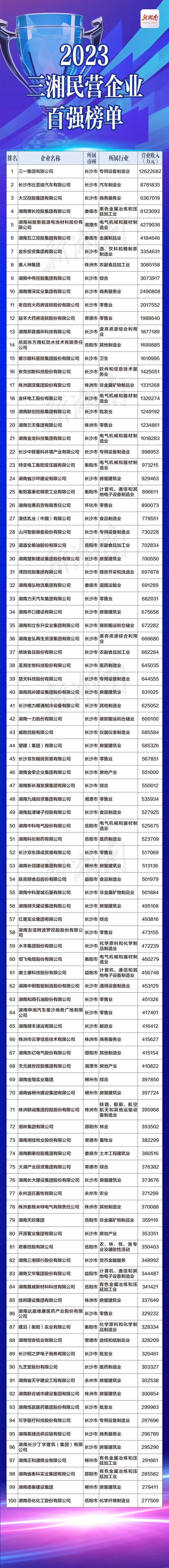“全球工程機(jī)械50強(qiáng)”中,湖南民營(yíng)企業(yè)占據(jù)3席;裕能新能源、唐人神等2家企業(yè)新入圍全國(guó)民營(yíng)企業(yè)500強(qiáng)。