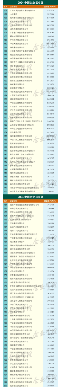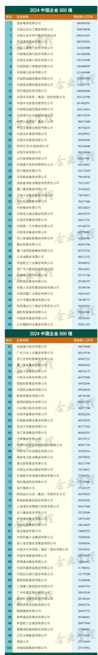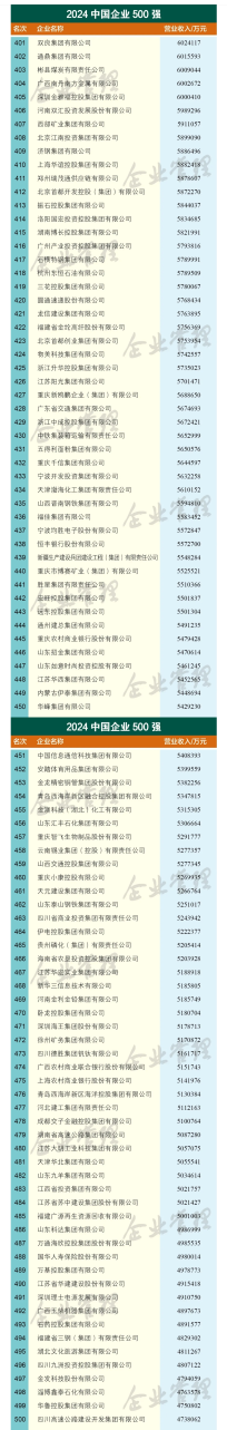 重磅發(fā)布 | 2024中國(guó)企業(yè)500強(qiáng)名單