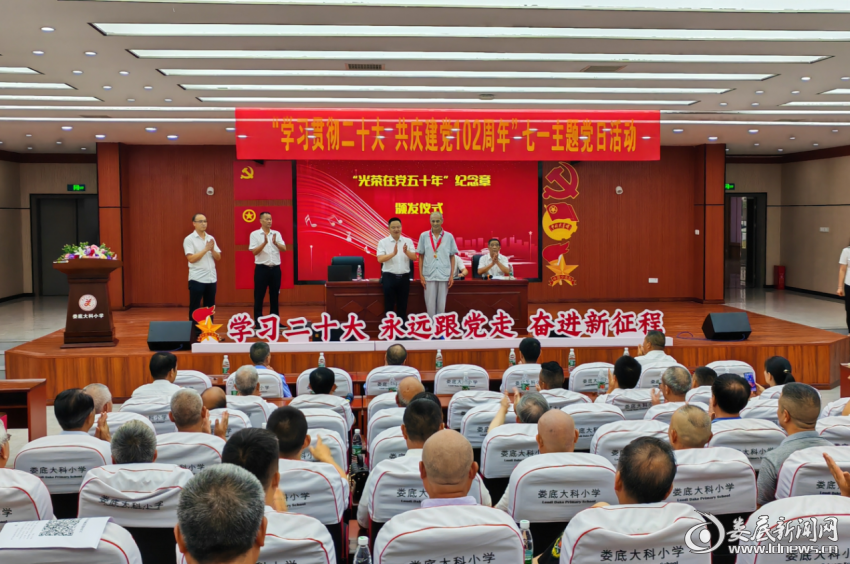 (為社區(qū)老黨員頒發(fā)“光榮在黨五十年”紀念章)