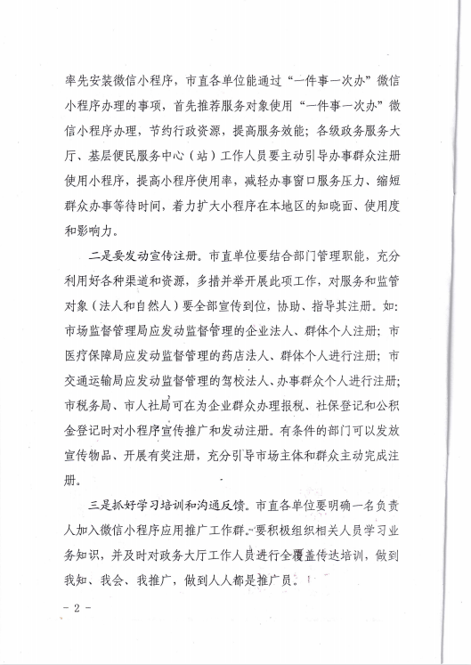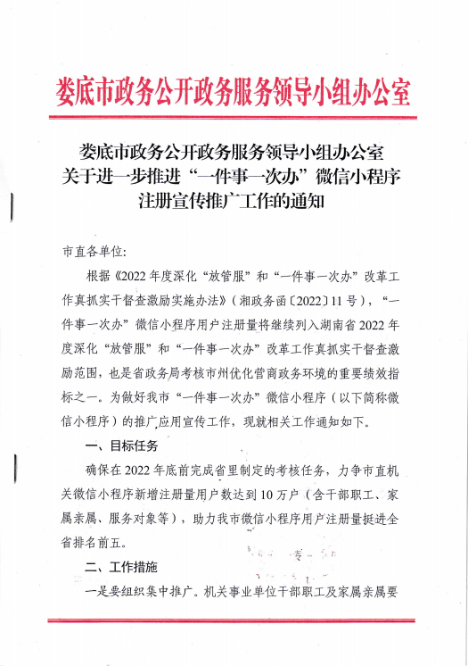 關(guān)于進(jìn)一步推進(jìn)“一件事一次辦”微信小程序注冊宣傳推廣工作的通知