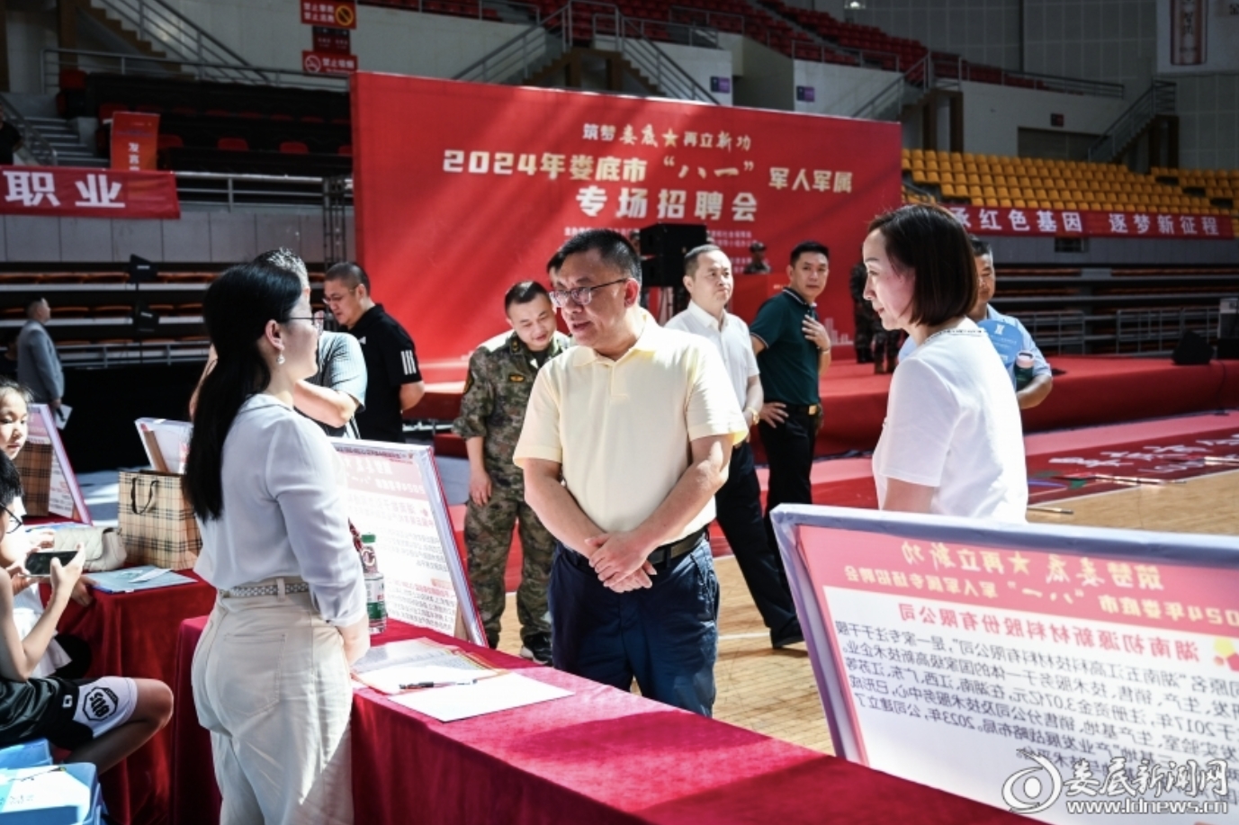 (8月2日,婁底市“八一”軍人軍屬專場招聘會在婁底市體育中心體育館舉行)